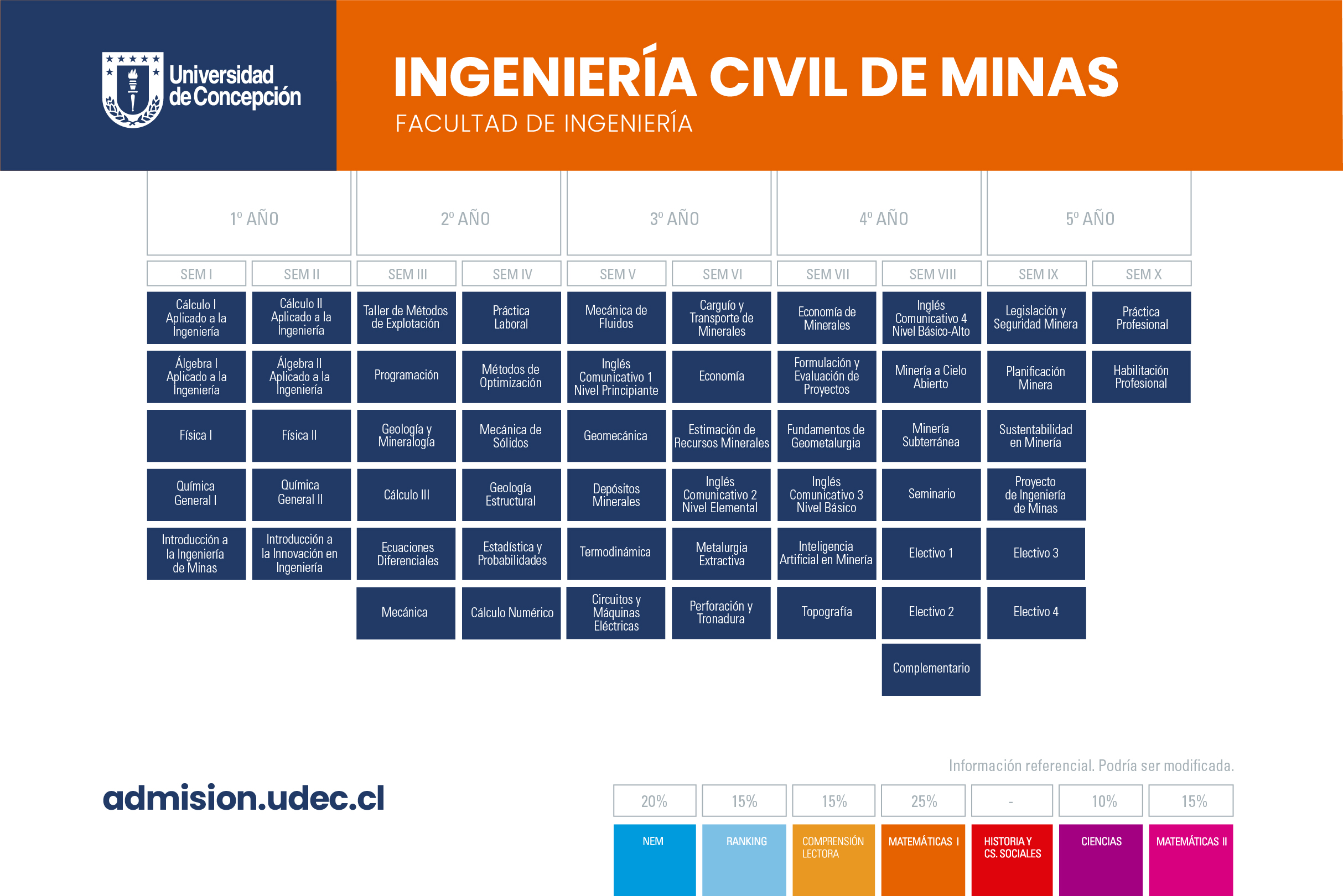 La actividad minera se caracteriza hoy, más que nunca, por el cambio. La globalización ha llevado a que la inserción de la industria nacional en el mercado mundial se enmarque no solo en el tradicional esquema oferta/demanda/precio sino que se deba cumplir con estándares de calidad y cuidado por el medioambiente. Tales requisitos demandan que la actividad se desarrolle en un entorno caracterizado principalmente por la adaptación al cambio. Dado que Chile es y seguirá siendo durante las próximas décadas un país minero por excelencia, es que los profesionales que se integren al sector deben poseer, además de una sólida formación técnica, flexibilidad y capacidad para trabajar en entornos multidisciplinarios y multiculturales. Esta es precisamente la impronta que define a los/as egresados/as de Ingeniería Civil de Minas.